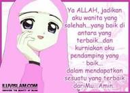 Aku teringat akan potongan hadis itu. Aku ingin merebut gelaran isteri solehah. Aku ingin segala yang menyenangkan buat suamiku. Tuturku ku lapis dengan sebaik mungkin agar tidak tercalar hatinya dengan perkataanku. Ku hiaskan wajahku hanya untuk tatapannya semata-mata.